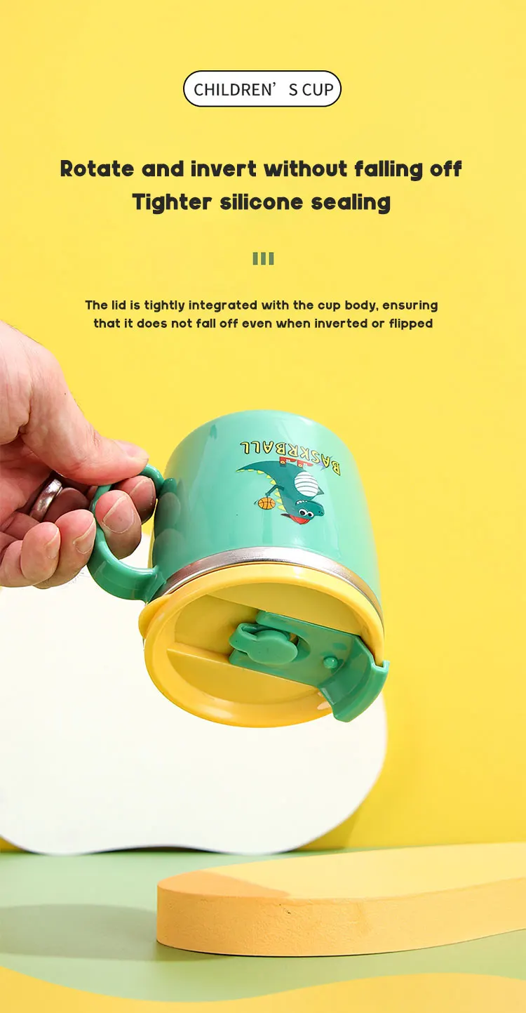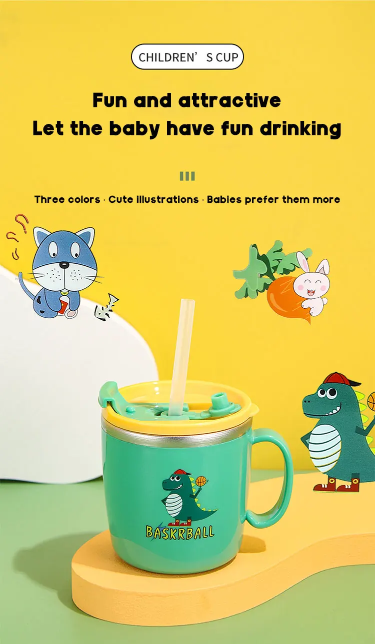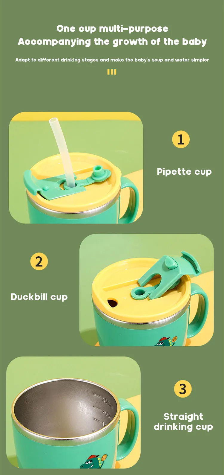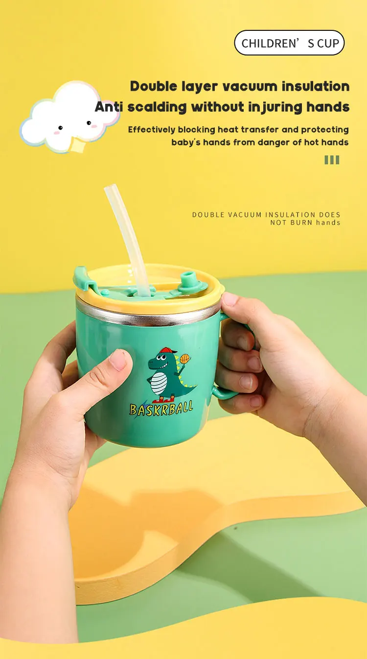 280ml Dinosaur Baby Feeding Cup Stainless Steel Thermos Straw Cup