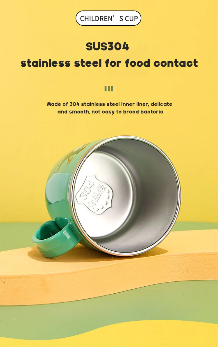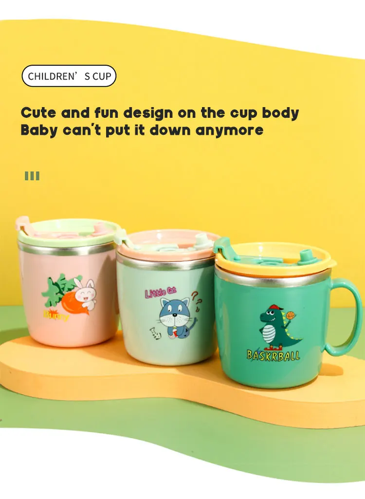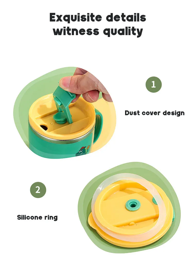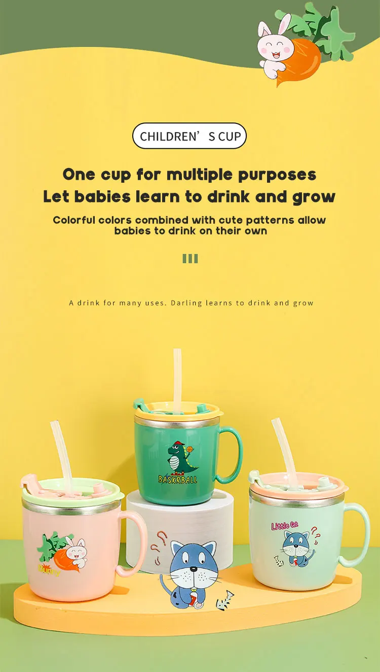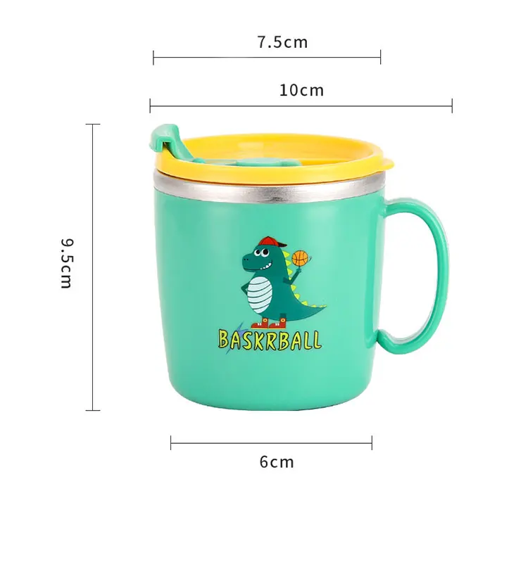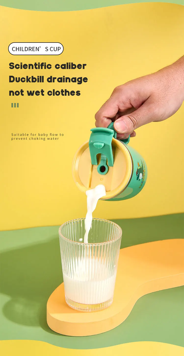 280ml Dinosaur Baby Feeding Cup Stainless Steel Thermos Straw Cup