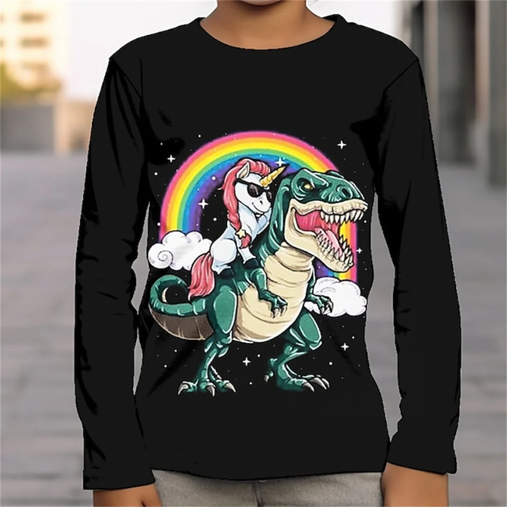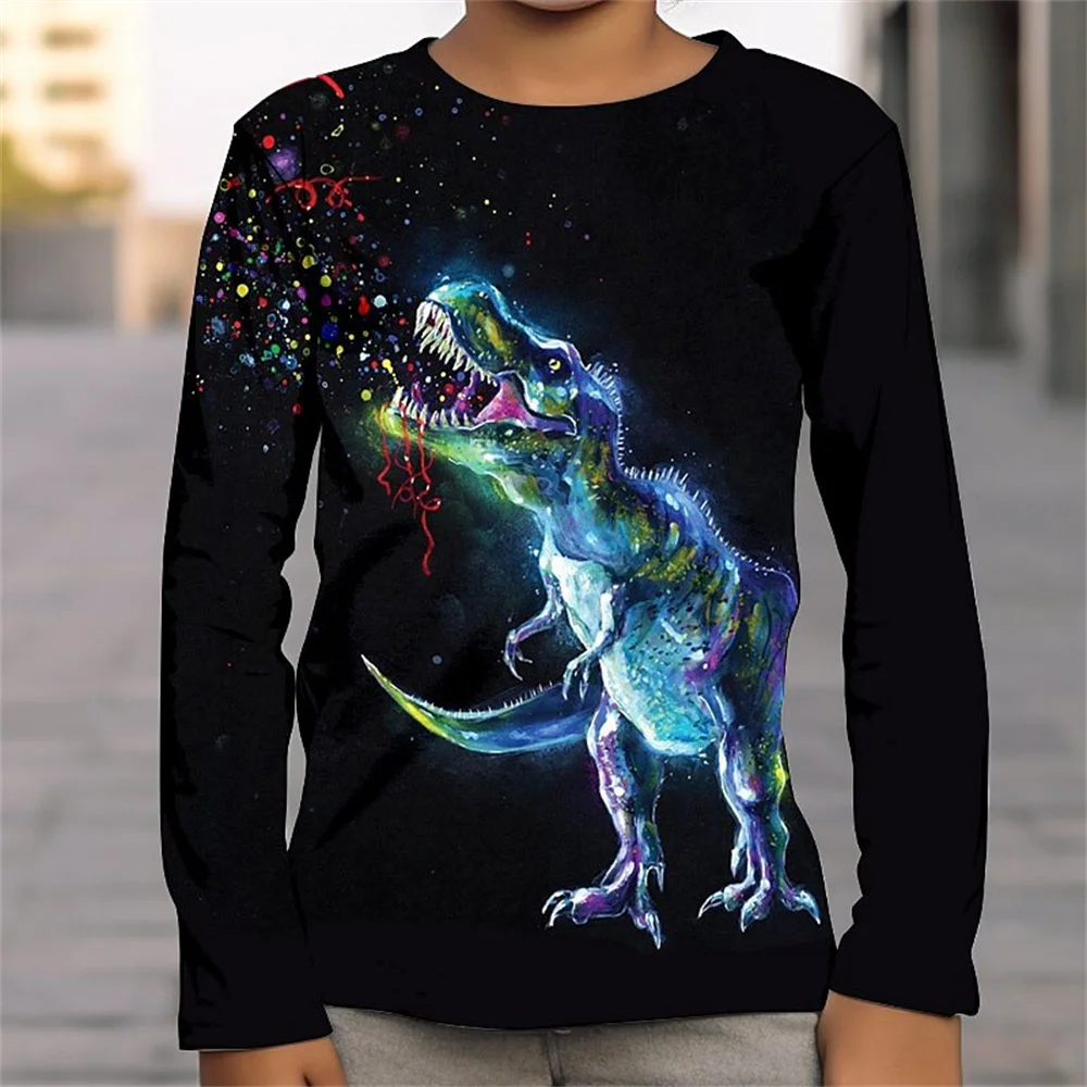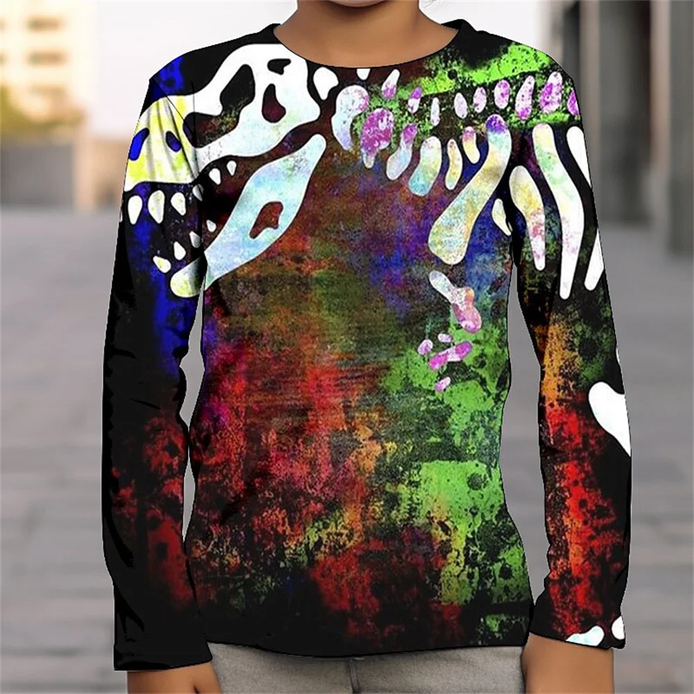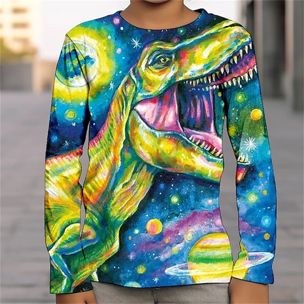 3d Dinosaur Oil Painting One Piece Boy Long Sleeve T Shirt