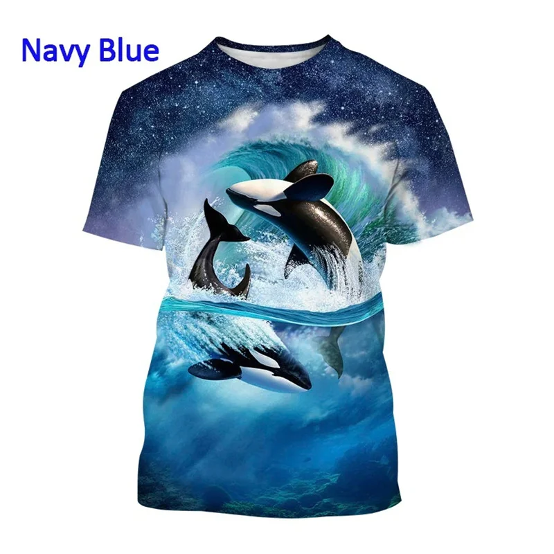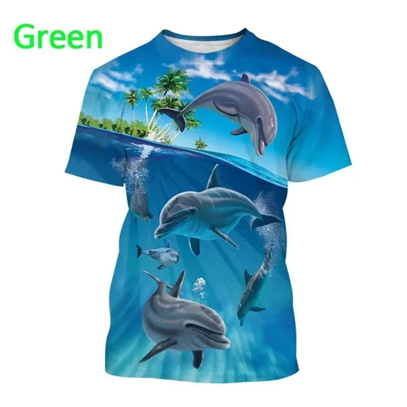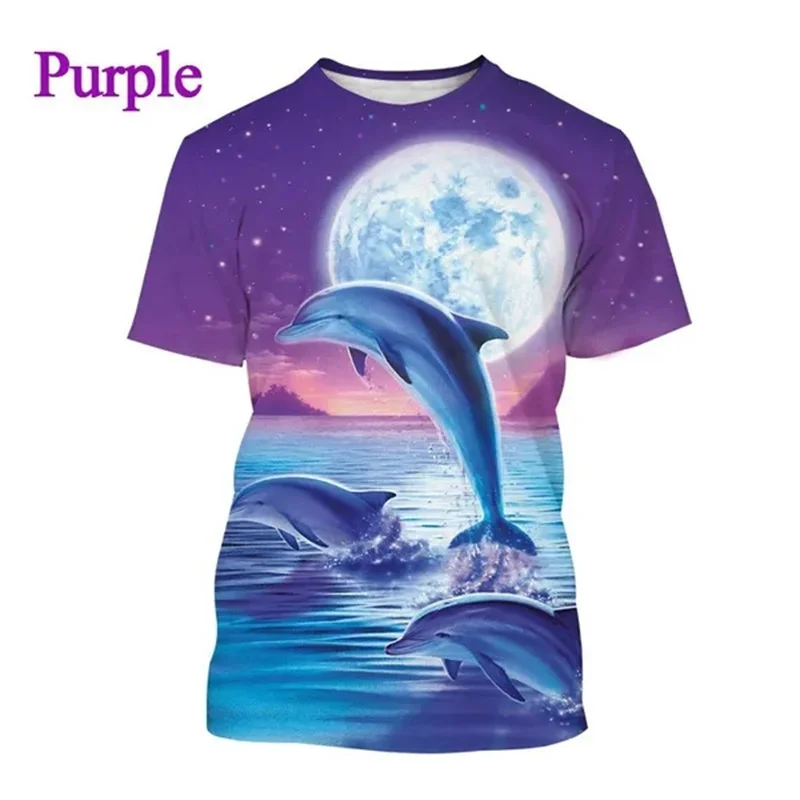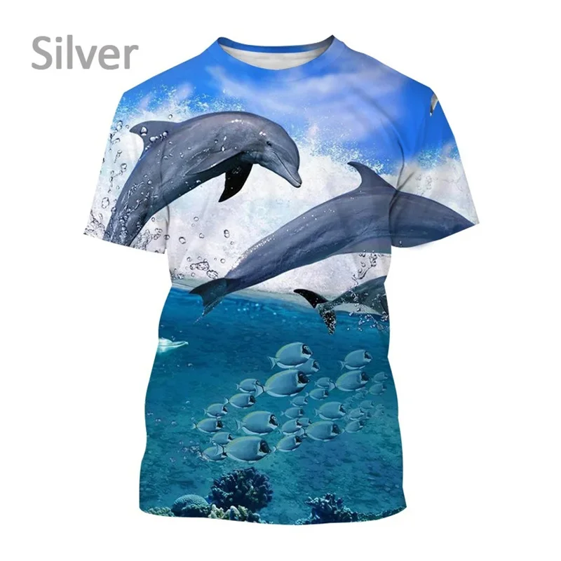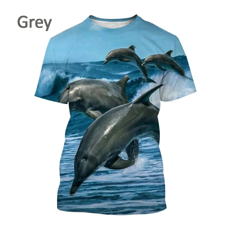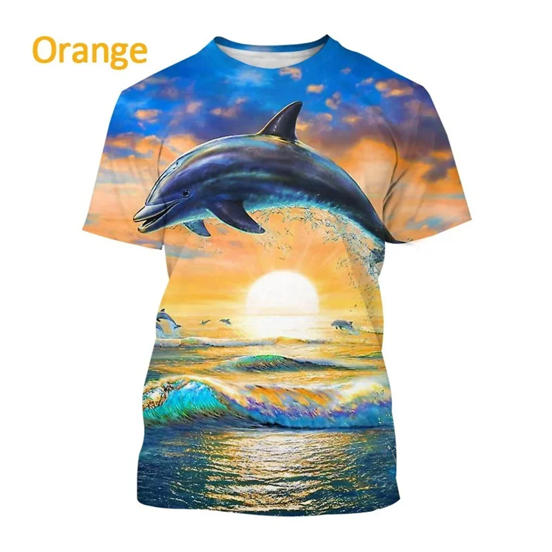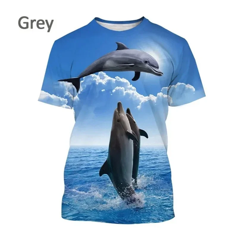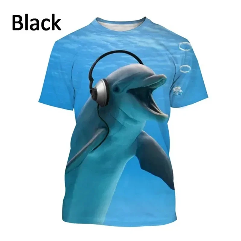 3D Funny Dolphins Printed Short-sleeved T-shirt