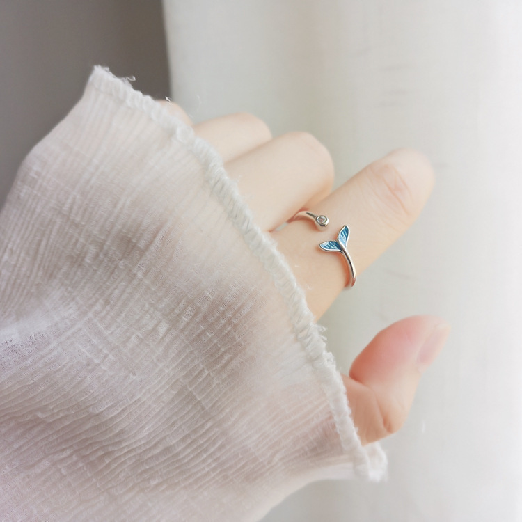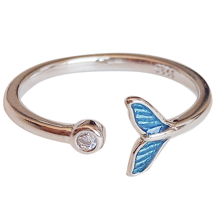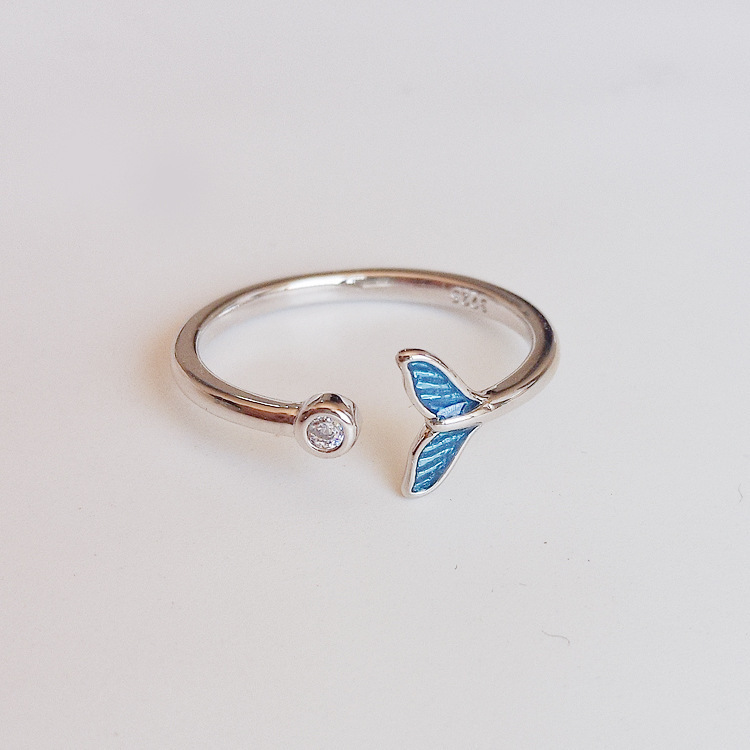 Blue Dolphin Tail Sterling Silver Ring Women Fashion