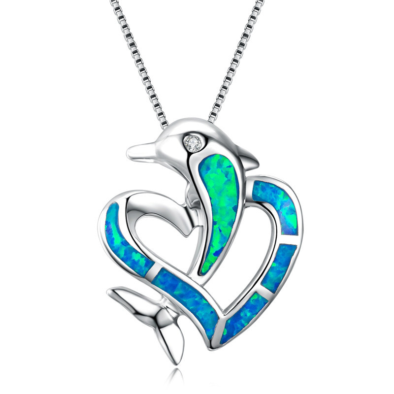 Blue Opal Love Dolphin Sweater Chain Clavicle
