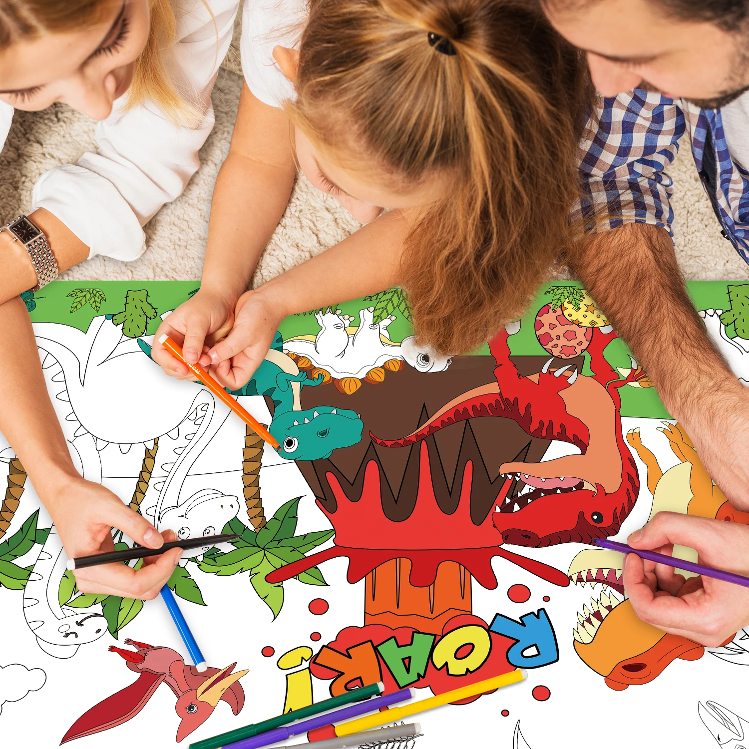 Dinosaur Coloring Books for Kids Coloring Poster Large Coloring Tablecloth for Boys Girls Dinosaur Birthday Party Supplies Favor