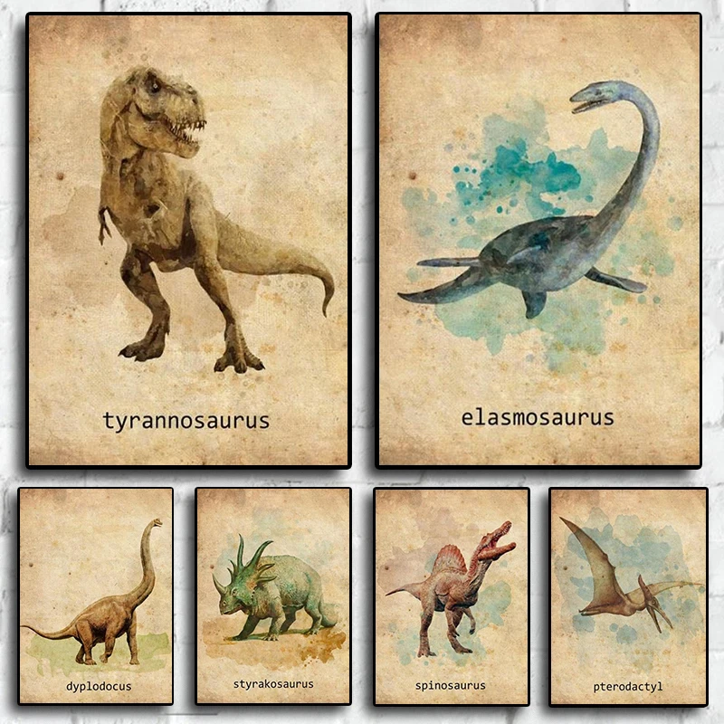 Dinosaur Pterosaur Triceratops Animal Retro Art Canvas