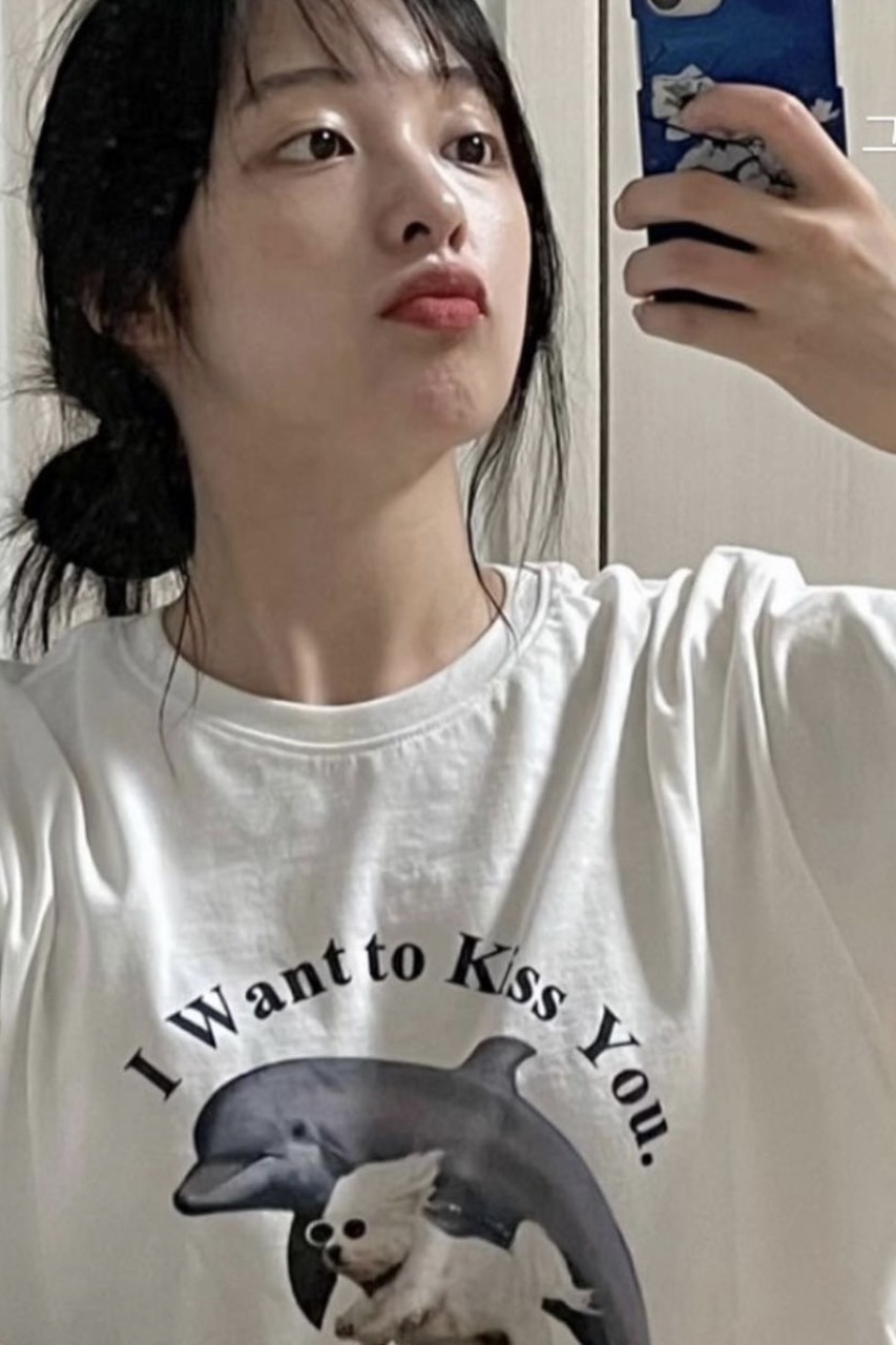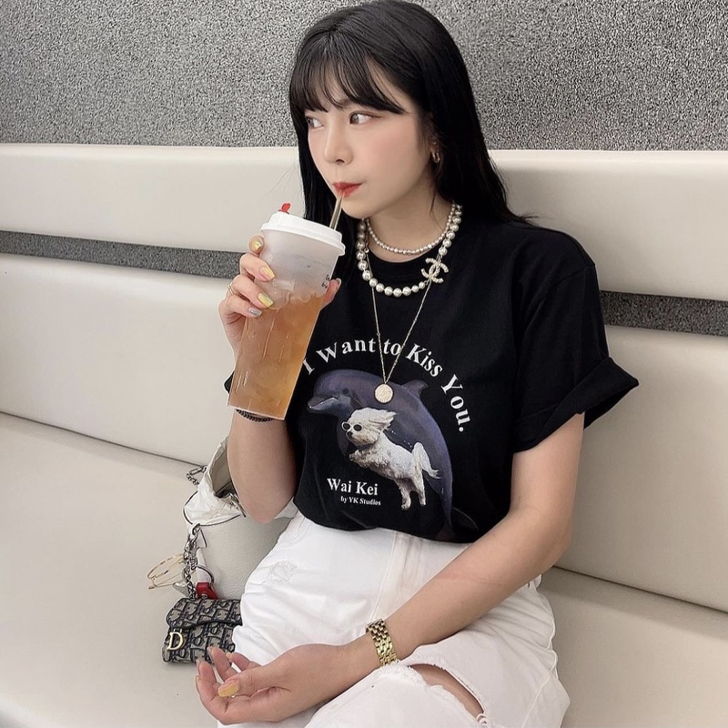 Dolphin Print Niche Design Sweet And Cool Pure Cotton Short-sleeved T-shirt