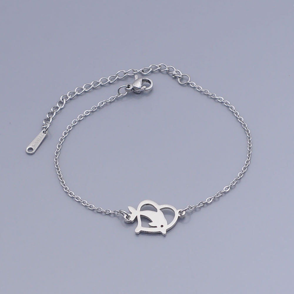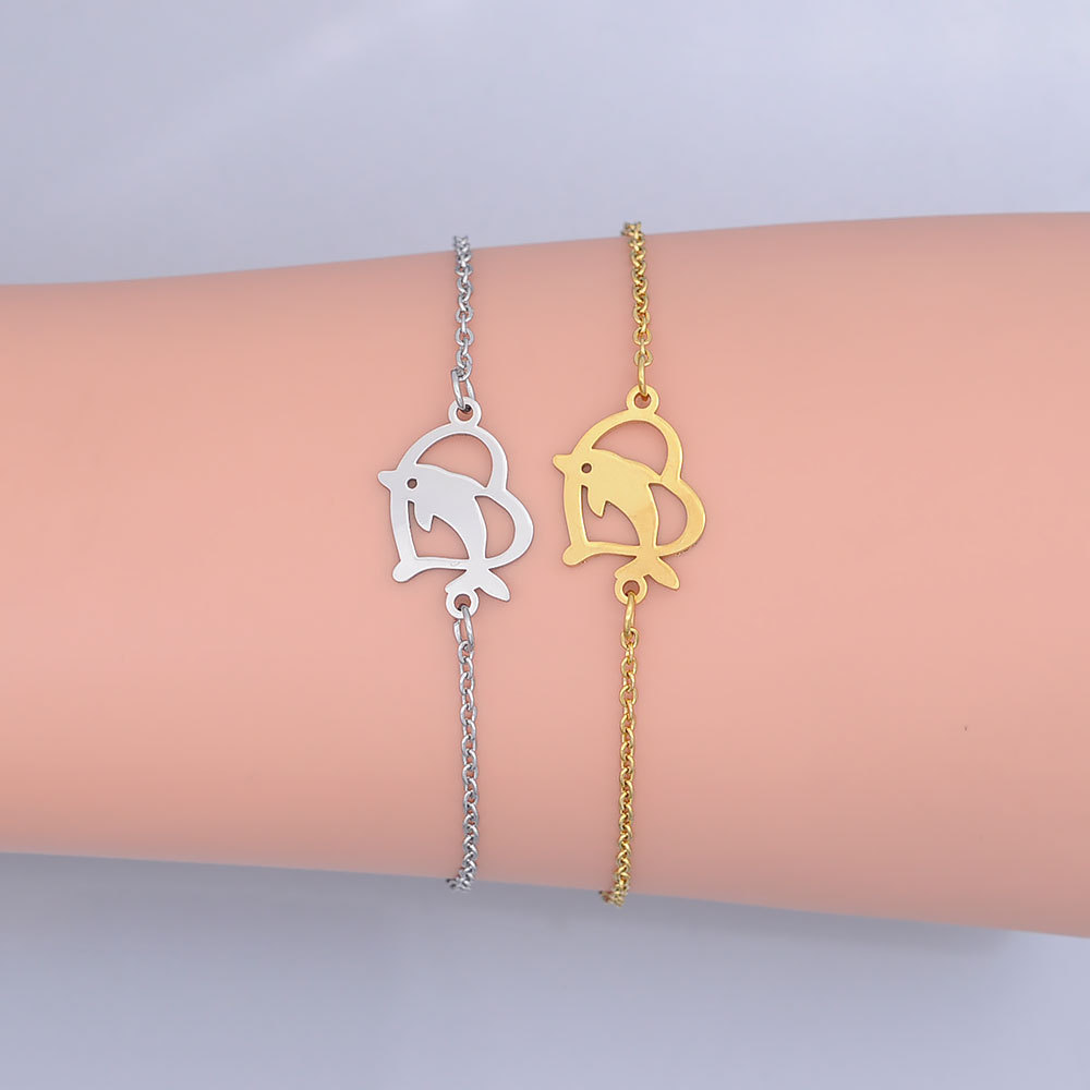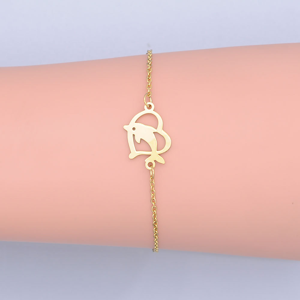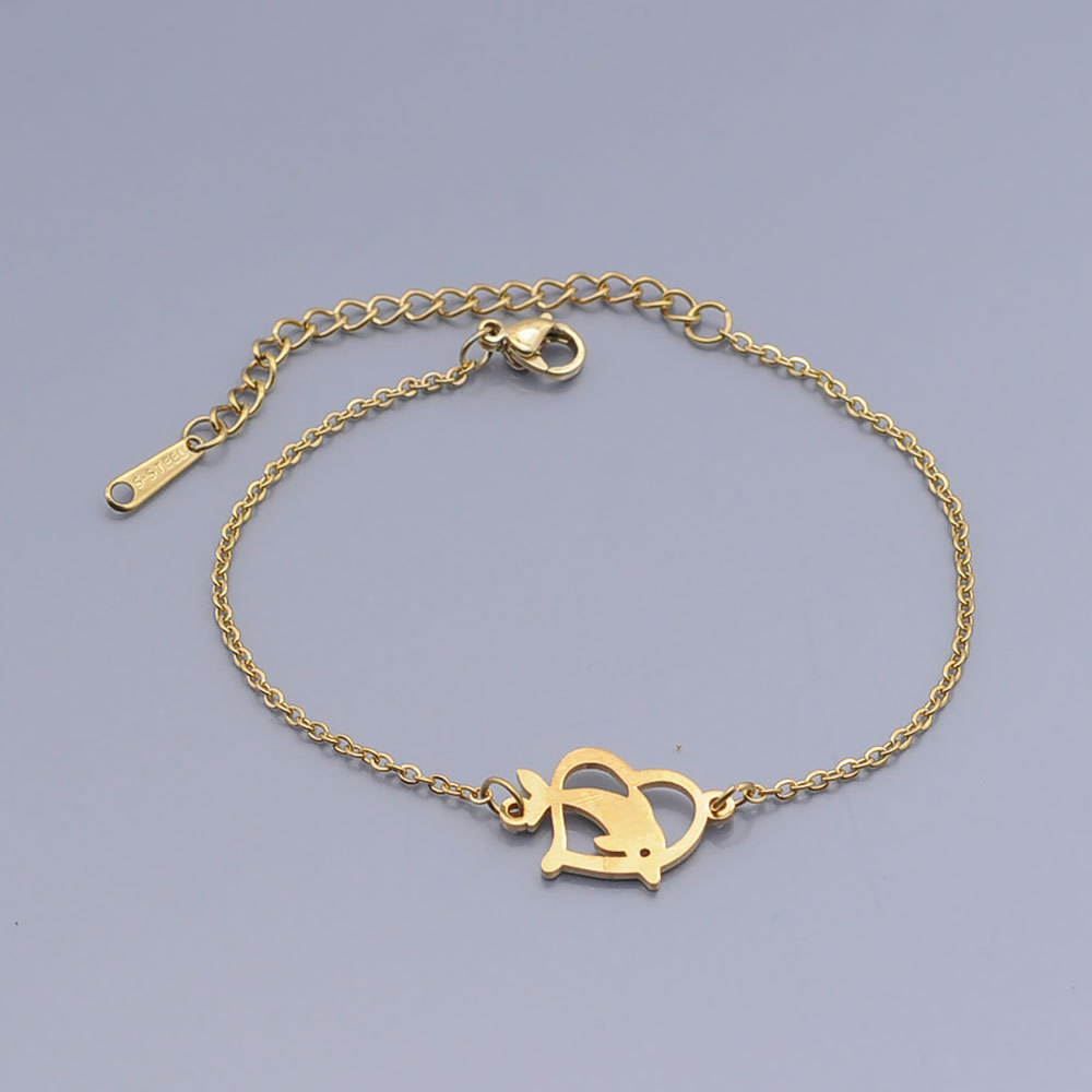 Gold Titanium Steel Bracelet Hollow Love Sea Animal Dolphin Fish Pendant