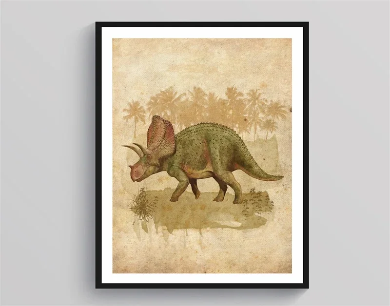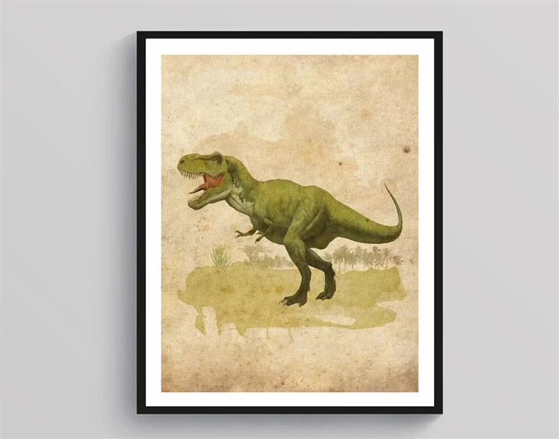 HD Vintage Dinosaur Illustration Jurassic Art Canvas