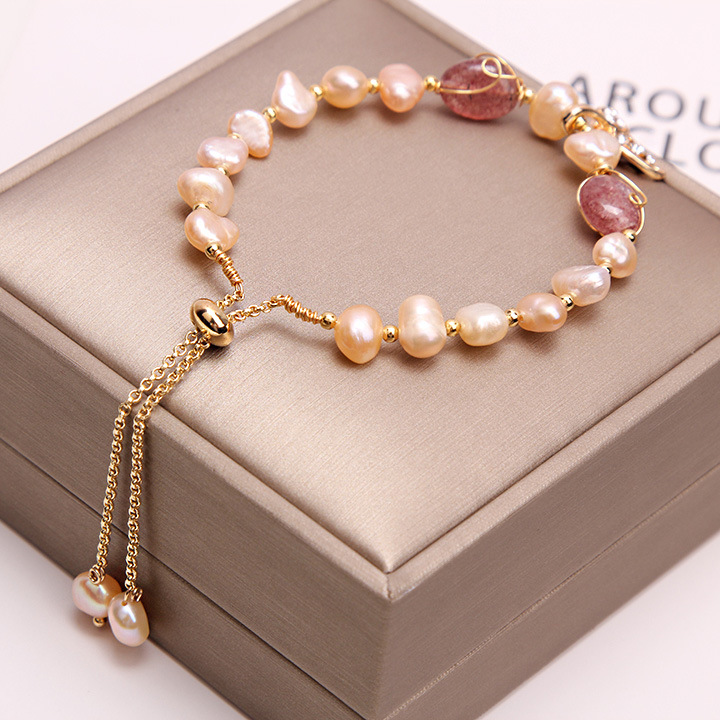 Color: Champagne Natural Pearl + Strawberry Crystal, White Natural Pearl + Green Agate