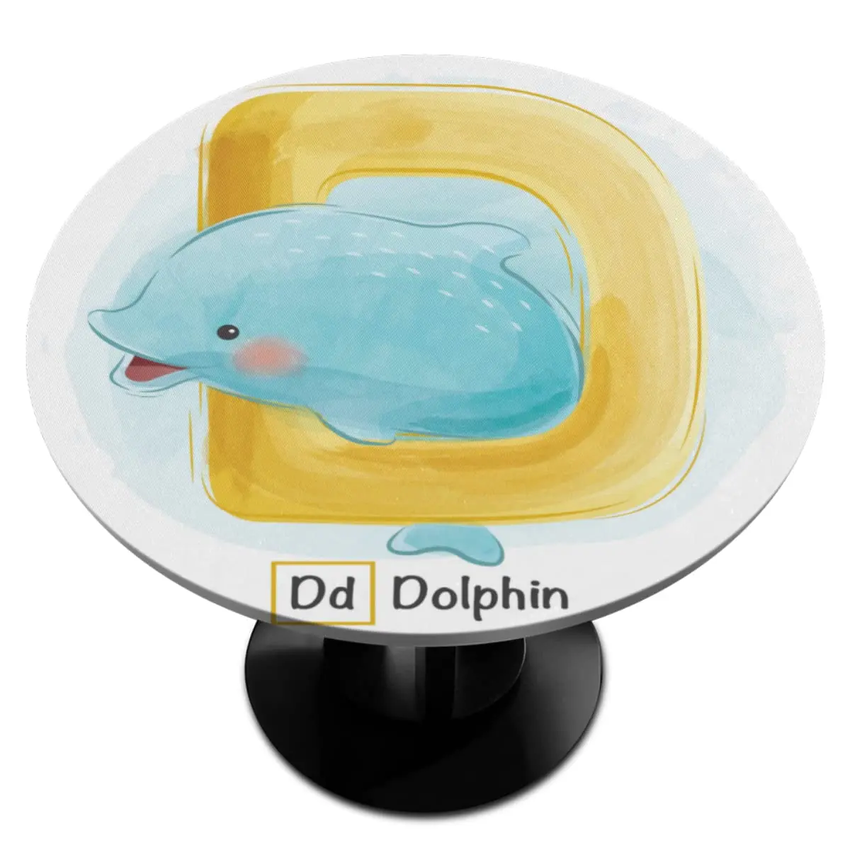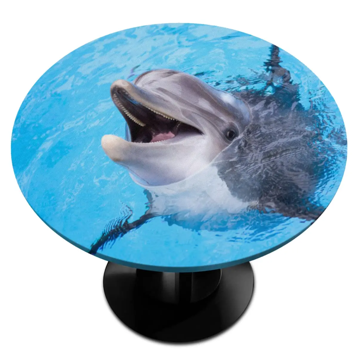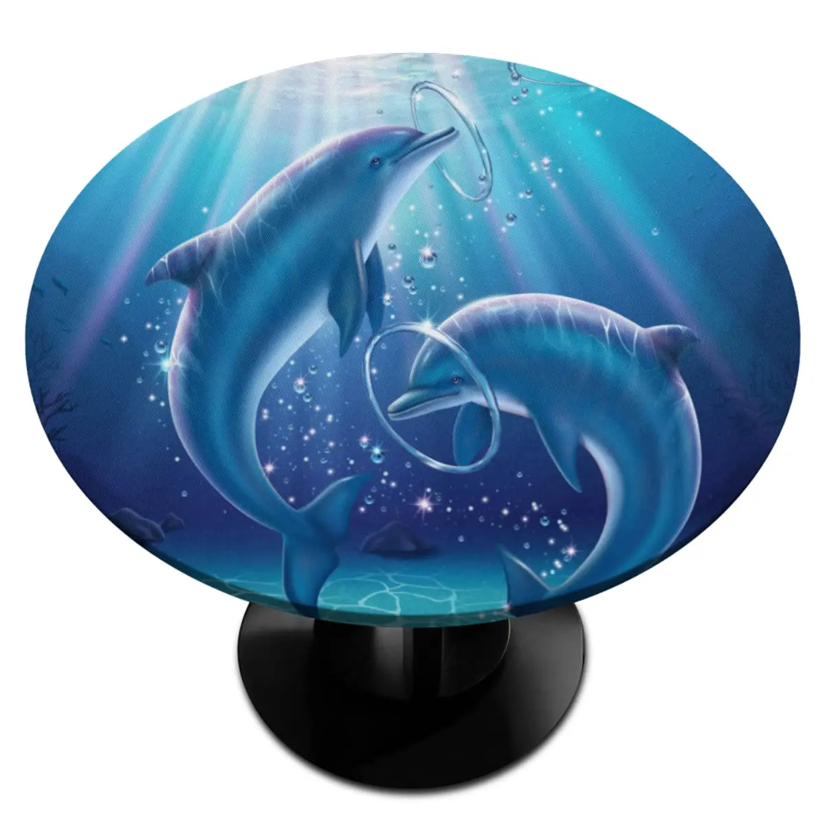 Ocean Sea Dolphin Fish Round Fitted Tablecloth Elastic Table Cover Waterproof Dining Table Cover for Indoor Outdoor Decor