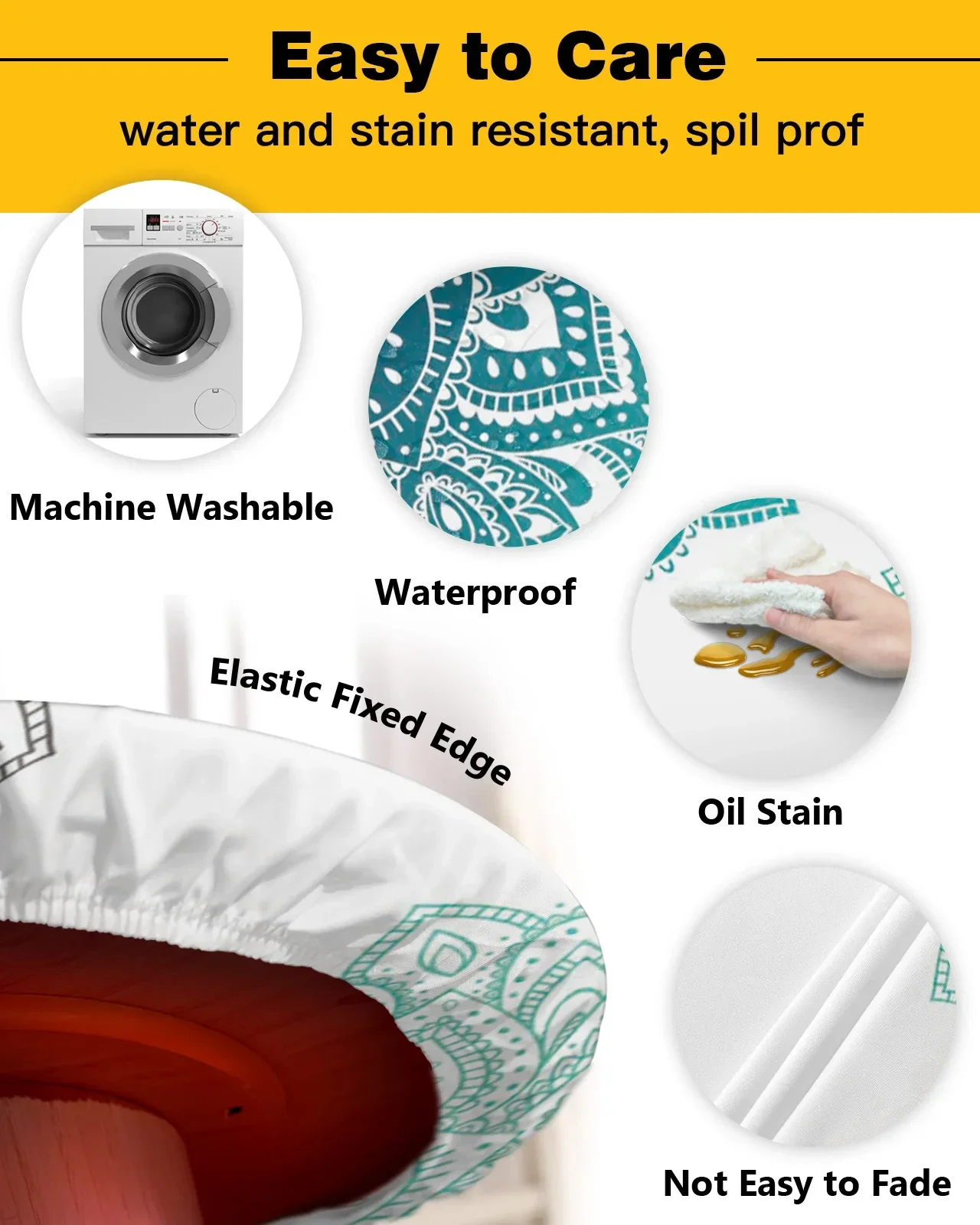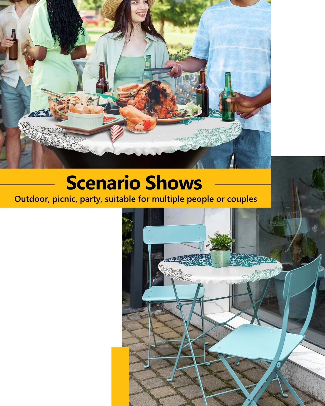 1️⃣Perfect Fit: The round elastic edge design tablecloth can be easily installed around any round outdoor picnic tables, dining room, kitchen tables with a size of 24"-70" Diameter; Elastic edges keep the polyester tablecloth tightly fitted and stay free from moving/falling off, no worry about blowing off. so don't need holder clips when you use our round tablecloth; Please measure the size before purchasing.