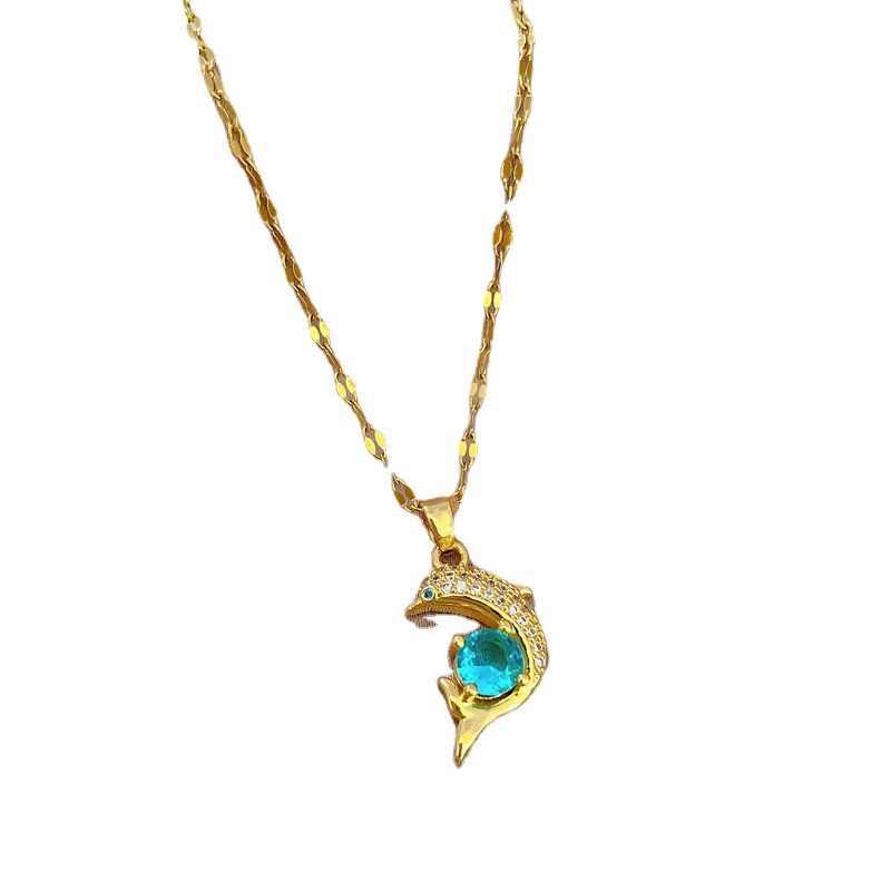 Simple Elegant Zircon Dolphin Blue Clavicle Chain