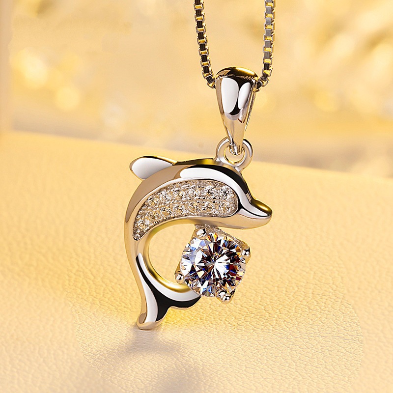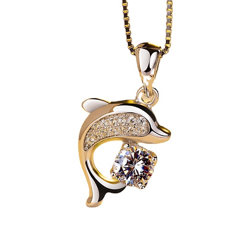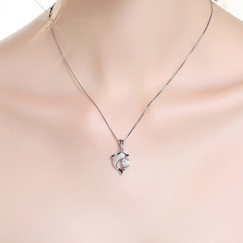 Color: Dolphin pendant [without chain], box chain [45cm], Dolphin pendant + necklace